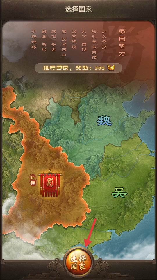 1、選擇魏蜀吳勢力發(fā)展城池并招募三國名將。