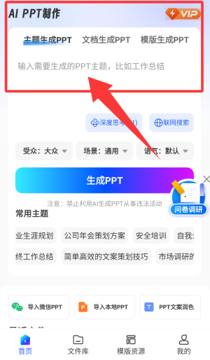 2、點擊紅色箭頭處“生成PPT”。