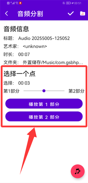 ★分割歌曲:為歌曲選擇一個(gè)時(shí)間點(diǎn),然后從該時(shí)間點(diǎn)將歌曲分割為兩個(gè)部分