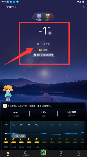 2、在主界面查看實(shí)時(shí)氣溫、天氣狀況等詳細(xì)信息。