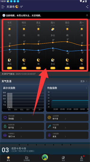 3、下滑頁面可瀏覽未來多日的溫度變化與天氣趨勢。