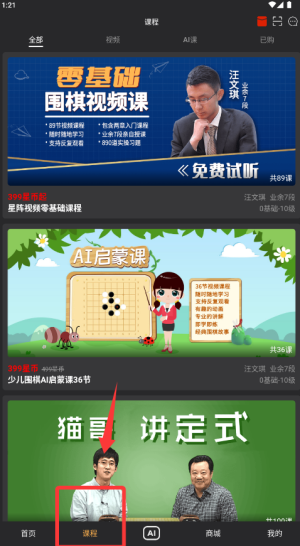 1、打開星陣圍棋app,先選擇適合自己水平的課程,從基礎(chǔ)到進(jìn)階都有詳細(xì)分類,跟著教程一步步學(xué)習(xí)規(guī)則和技巧。