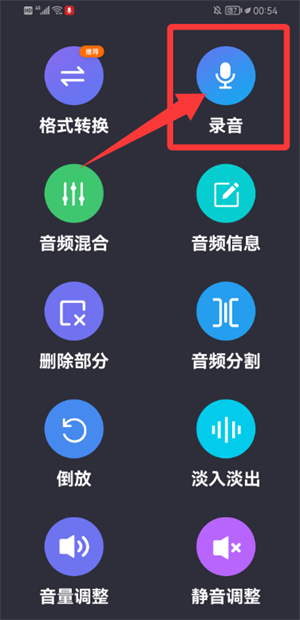 1、在主界面點(diǎn)擊錄音按鈕,進(jìn)入錄音頁(yè)面。