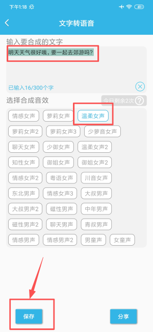 3、確認(rèn)內(nèi)容后點(diǎn)擊保存,完成語音合成操作。