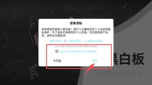 1 下載軟件后打開進(jìn)入使用須知界面仔細(xì)閱讀用戶協(xié)議和隱私政策點(diǎn)擊同意按鈕即可開始使用。