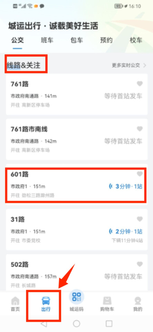 4、在出行頁面查看線路與關注信息。