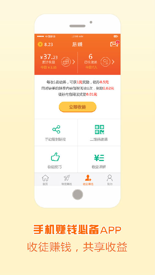 易賺收徒:在易賺您可以邀請(qǐng)您的朋友做徒弟,徒弟也會(huì)為您帶來(lái)收益哦。