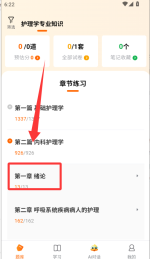 2、選擇具體課程后,可以先學(xué)習(xí)章節(jié)知識(shí)點(diǎn),然后進(jìn)入對(duì)應(yīng)的專項(xiàng)題庫(kù)開(kāi)始做題練習(xí)。