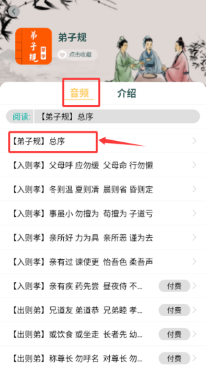 2、于該頁面選擇弟子規(guī)選項,進入對應(yīng)的章節(jié)內(nèi)容界面。